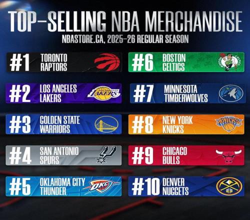 加拿大地區(qū)NBA球衣銷量球隊(duì)排名