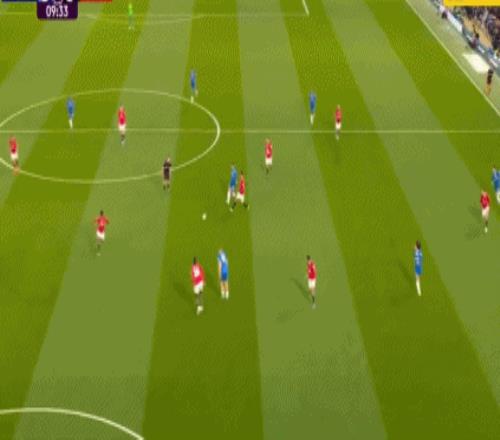 第43分鐘,B費右路強行突破下底傳中,謝什科前點掩護,庫尼亞后點包抄迎球推射得手,曼聯打破僵局,1-0!