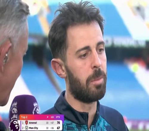 英超第33輪,曼城主場(chǎng)2-1擊敗阿森納,賽后,曼城隊(duì)長(zhǎng)伯納多-席爾瓦在現(xiàn)場(chǎng)接受了英超官方的采訪。