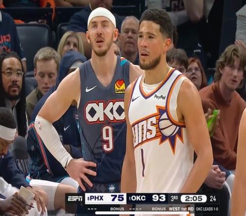 這場(chǎng)風(fēng)波的源頭要追溯到4月22日太陽(yáng)客場(chǎng)挑戰(zhàn)雷霆的季后賽首輪第二場(chǎng)比賽。當(dāng)時(shí)太陽(yáng)以107-120不敵雷霆,系列賽大比分0-2落后,陷入了不利局面。比賽進(jìn)行到第三節(jié)還剩2分05秒時(shí),布克突破造犯規(guī)后,因身體慣性順勢(shì)出球,無(wú)意碰到了對(duì)手,雷霆球員卡魯索當(dāng)場(chǎng)向裁判示意應(yīng)該吹技術(shù)犯規(guī),主裁詹姆斯·威廉姆斯沒(méi)有回看錄像,也沒(méi)有任何解釋,直接給布克追加了一次技術(shù)犯規(guī)。這一判罰成為了整場(chǎng)比賽的轉(zhuǎn)折點(diǎn)之一,也為賽后的爭(zhēng)議埋下了伏筆。